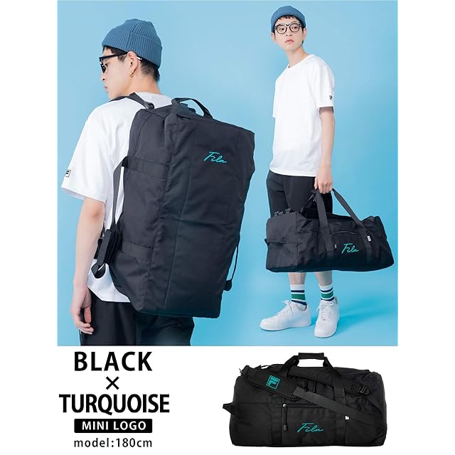 [フィラ] ボストンバッグ リュック 大容量 50L 3WAY 旅行バッグ ショルダーバッグ スポーツバッグ 2タイプロゴ 筆記体 正規体 ベルト取り外し可能 大型収納 0.63kg fm2276-fm2334 ブラック×ターコイズ(筆記体ミニ) | inou