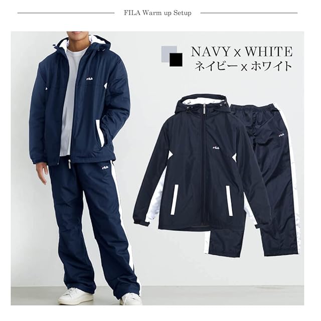 [Fila] 上下セット 裏フリース ウォームアップスーツ 温かい ウィンドブレーカー スポーツウェア 長ズボン ランニング ジム 通学 ジャージ上下セット カジュアルスーツ メンズ ネイビー×ホワイト 3L | inou