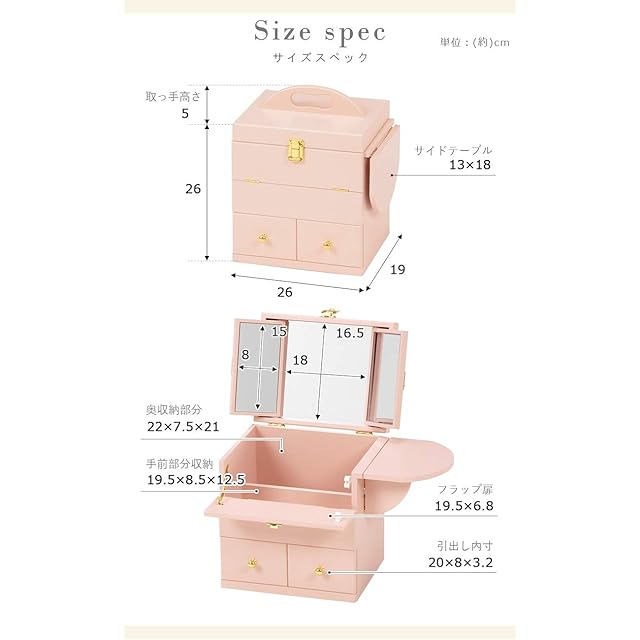 【各部内寸】引出内寸:(約)幅9×奥行8×深さ7cm 収納部内寸(奥):(約)幅22×奥行7×高さ21cm 収納部内寸(手前):(約)幅19×奥行8×高さ12cm
