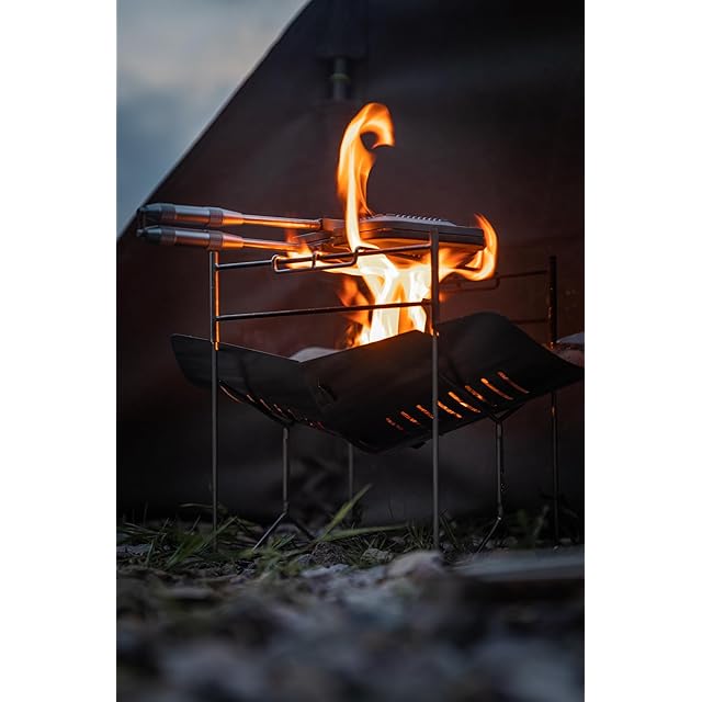 【4本軸の頑丈さと固定力】火床を支えるフレームのトラス構造により頑丈さが大幅にUPしており、小型のダッジオープンでも置けられます。また、火床も4か所でしっかり固定されているため、持ち上げても崩れることなく扱うことができます。