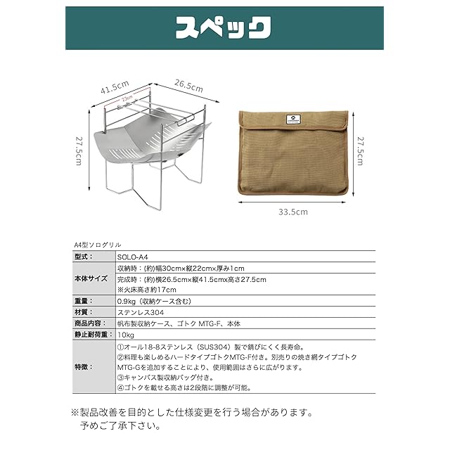 商品名:キャンピングムーン(CAMPING MOON) A4型 ソログリル 焚き火台 ソロ 焚火台 焚き火グリル ステンレス304 帆布ケース SOLO-A4