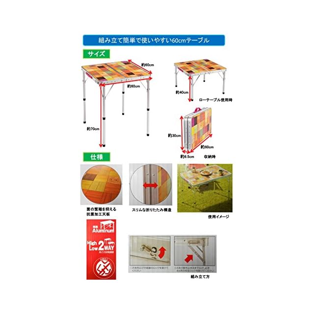 サイズ:使用時/約60×60×高さ40/70cm、収納時/約60×6.5×高さ30cm