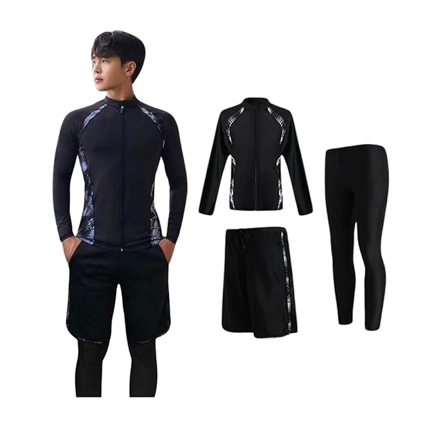 [foveitaa] ラッシュガード メンズ フィットネス水着 上下 セット 長袖 前開き レギンス サーフパンツ フィットネス 男性 3点セットUVカット温泉 ビーチ 水泳 スイミング メンズ 競泳 吸汗 速乾 9827 L | inou