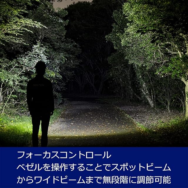 明るさ:High/650ルーメン、Mid/300ルーメン、Eco/20ルーメン、使用電池:専用充電池