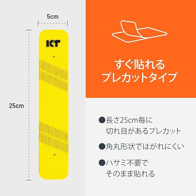 【公式】KT TAPE キネシオロジーテープ PRO20 レカット(5cm×25cm) 20枚入 選べる10色 スポーツテーピング はがれにくい 水に強い フリーサイズ 肌に優しい リカバリー ソーラーイエロー | inou