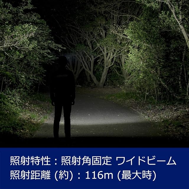 機能:1m落下耐久、耐塵・防滴仕様(IP64準拠)、最大照射距離:約116m