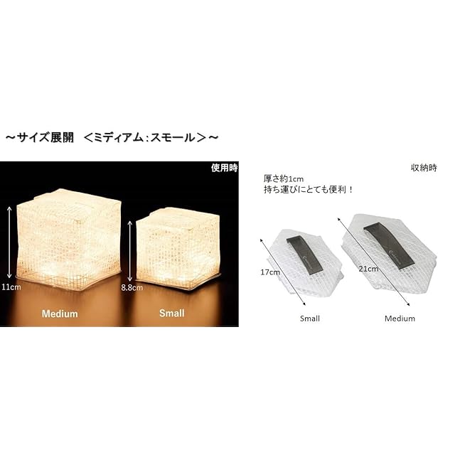 サイズ:110×110×110mm(使用時)、210×110×12mm(収納時)