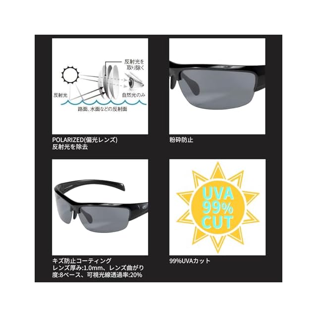 【仕様】99%UVAカット、キズ防止コーティング、粉砕防止、マイクロファイバーバッグ付き【用途】ジュニア 野球用