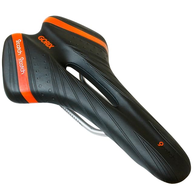 <b>GORIX(ゴリックス) 自転車 低反発 サドル [厚手クッション・やわらかい開口タイプ] (ブラックxオレンジ) A6-1</b><br><br>【地面からの衝撃を吸収】<br>バックは大きなラウンド形状なので、安定して長く座れる柔らかい低反発タイプのサドルです。<br>底面以外の厚みは、厚手のクッション素材、張りのある柔らかい反発素材で、<br>身体の重量や衝撃を和らげてお尻の痛みを軽減してくれます。<br><br>【自分好みのカスタマイズ】<br>自転車全般、ロードバイク、マウンテンバイク、クロスバイク、ミニベロの サイクリング、<br>出勤通学に日常使いとしても、使用できる安定感のあるサドルです。<br>スポーティなデザインとフラットシルエットで、車体に合わせてカスタマイズが楽しめます。 <br><br>【ホール&溝付き】<br>開口タイプのホールと、ホールに続くセンター全体へ、<br>大きく溝が入っているので尿道への圧迫感を更に和らげます。<br><br>【豊富なカラーバリエーション】<br>シンプルなロゴ入りのブラックベースとホワイトベースのカラーリングで、車体に合わせてカスタマイズしやすいサドルデザインです。<br>全12色<br>ブラック×ピンク、ブラック×ブルー、ブラック×チェレステ、ブラック×イエロー、<br>ブラック×オレンジ、ブラック×レッド、ホワイト×ピンク、ホワイト×チェレステ、<br>ホワイト×ブラック、ホワイト×レッド、ホワイト×ブルー、ホワイトxグリーン<br>※商品のカラーはディスプレイ種類環境等により、実物と異なって見える場合がございます。<br><br>【サイズ】<br>幅16×高さ7.2×長さ27.5×レール幅(先-先)5cm <br><br>【重量】<br>約310g <br><br>【シート】<br>ポリウレタン樹脂/PU <br><br>【レール】<br>スチール<br><br>【GORIX(ゴリックス)】<br>自転車の魅力の1つは、本体の購入後にカスタマイズができる点です。<br>「見た目をカッコよくしたい」「快適なサイクリングライフを充実させたい」という方へ、<br>初心者から上級者まで気軽に自転車を楽しめるように、<br>コストパフォーマンスがよく、カラーバリエーションも豊富なアイディア商品をラインナップしています。